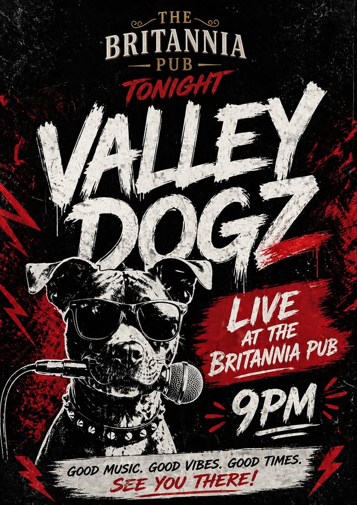 π₯ TONIGHT AT THE BRITANNIA PUB π₯ πΆ LIVE MUSIC FROM VALLEY DOGZ πΆ β° Starting at 9PM πΊ Great drinks π€ Big atmosphere πΈ Top tunes all night Get yourselves down for a cracking night of live music, good vibes and great company! π The Britannia Pub See you there! #livemusic #ValleyDogz #britanniapub #tonight #PubNights #goodtimes #localmusic Britannia Houghton Kirsti Snowdon Gav Minniss Newbottle Street Entertainment Tonight Entertainment Weekly