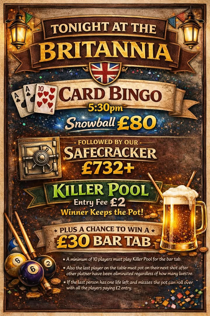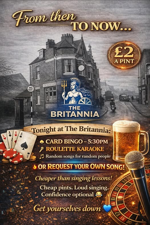 The Britannia is a fantastic community pub situated in the heart of Houghton-le-Spring! Here we offer great value for money and are your go-to place for all things sport and big weekend entertainment. Enjoy pool tables, dart boards, and cheer on your favourite teams with your perfect pint in hand! We canโt wait to see you soon!